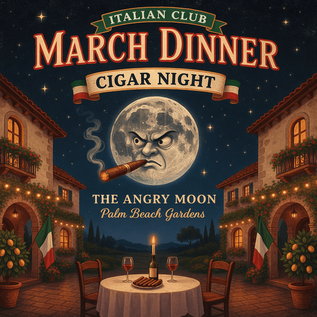 Our March Members Meeting will be held at Angry Moon Cigar Lounge, giving members an opportunity to relax, connect, and enjoy an evening together in true Italian-club fashion.